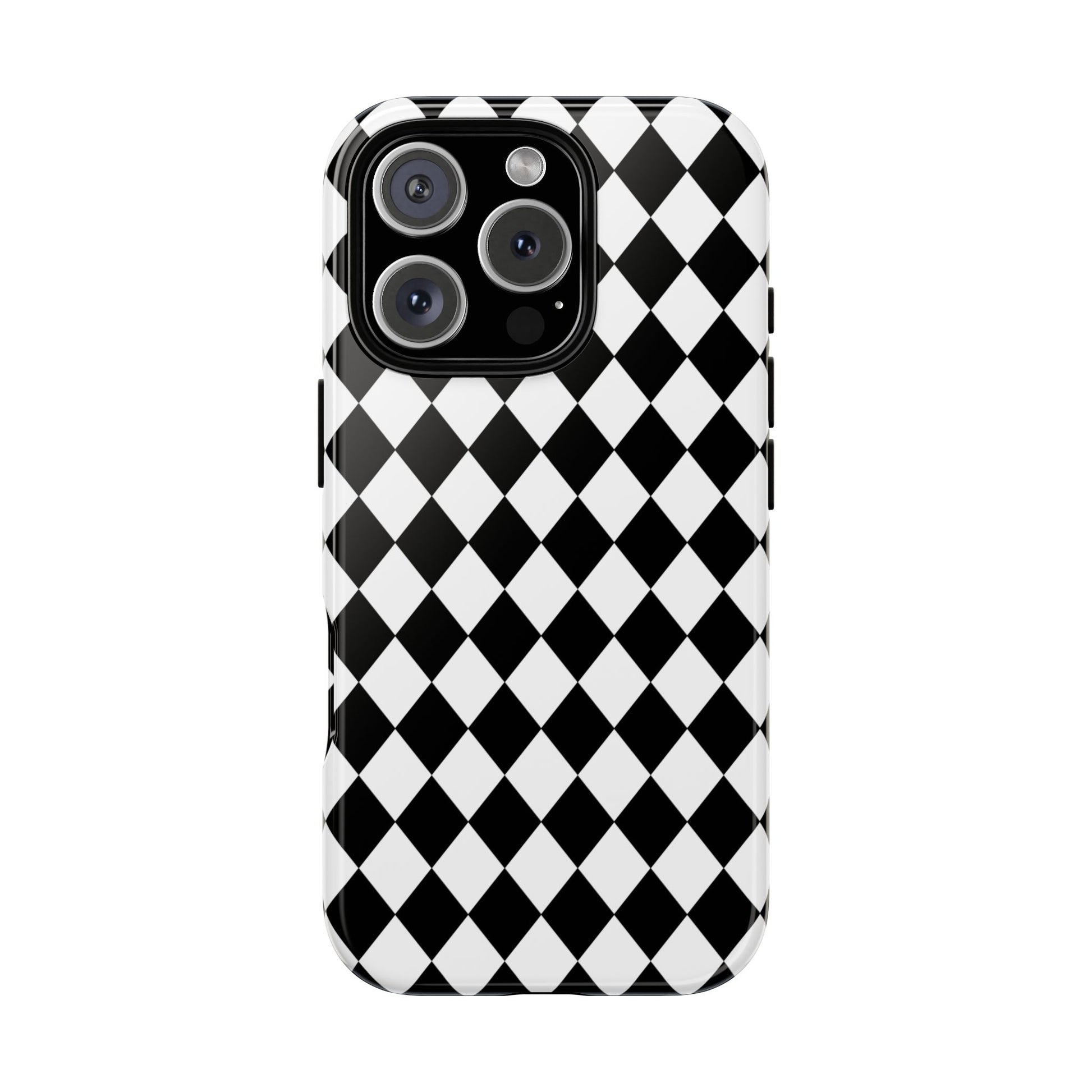 Protect your smartphone with the White and Black Diamond Tough Phone Case Cover, designed for iPhone, Google, and Samsung models. Its durable construction shields your device from drops and daily wear, while the sleek black and white diamond pattern adds a stylish edge. Engineered for a precise fit, this case ensures easy access to all buttons and ports without compromising protection. Ideal for those seeking a robust yet sophisticated phone cover.